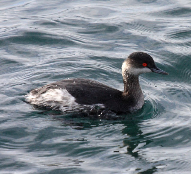 parte posterior posee una mancha roja intensa, parte superior negra y blanca,